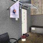 Grå villa, bottenvåningen - ingång 'baksida' vid skylt.